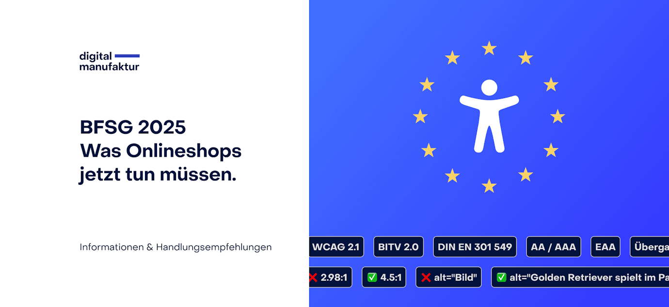 Die Umsetzung des Barrierefreiheitsstärkungsgesetzes (BFSG) im E-Commerce ist dringender denn je. Bis zum 28. Juni 2025 müssen alle Onlineshops und E-Commerce-Plattformen barrierefrei sein, um den gesetzlichen Anforderungen zu entsprechen. In diesem Artikel erfahren Sie, welche Schritte Sie jetzt unternehmen müssen, um die Anforderungen des BFSG fristgerecht zu erfüllen.