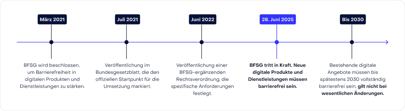 Übergangsfrist bis 2030: Bestehende digitale Angebote müssen bis spätestens 2030 vollständig barrierefrei sein.